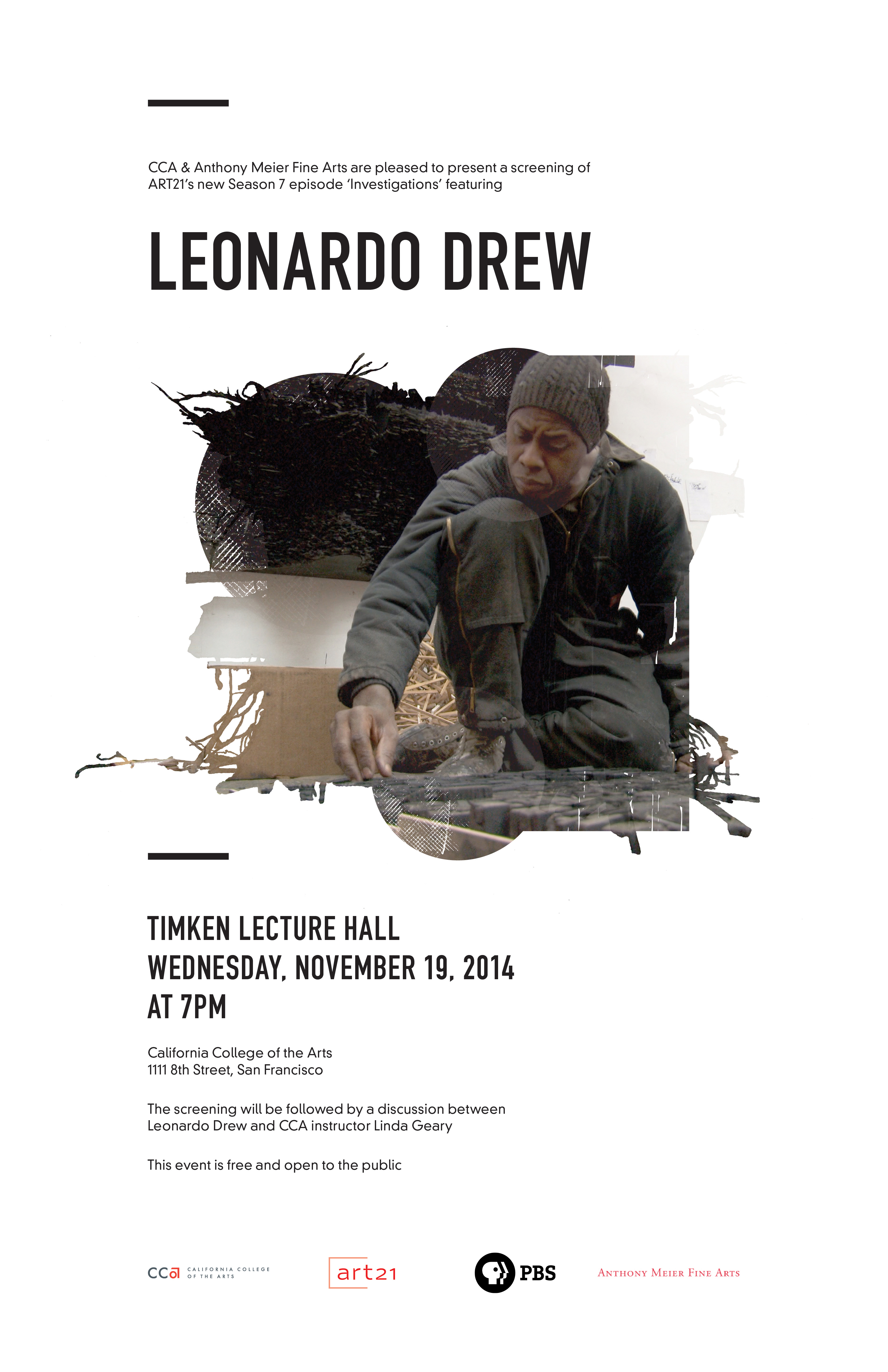 // Poster for lecture by artist Leonardo Drew at California College of the Arts.
