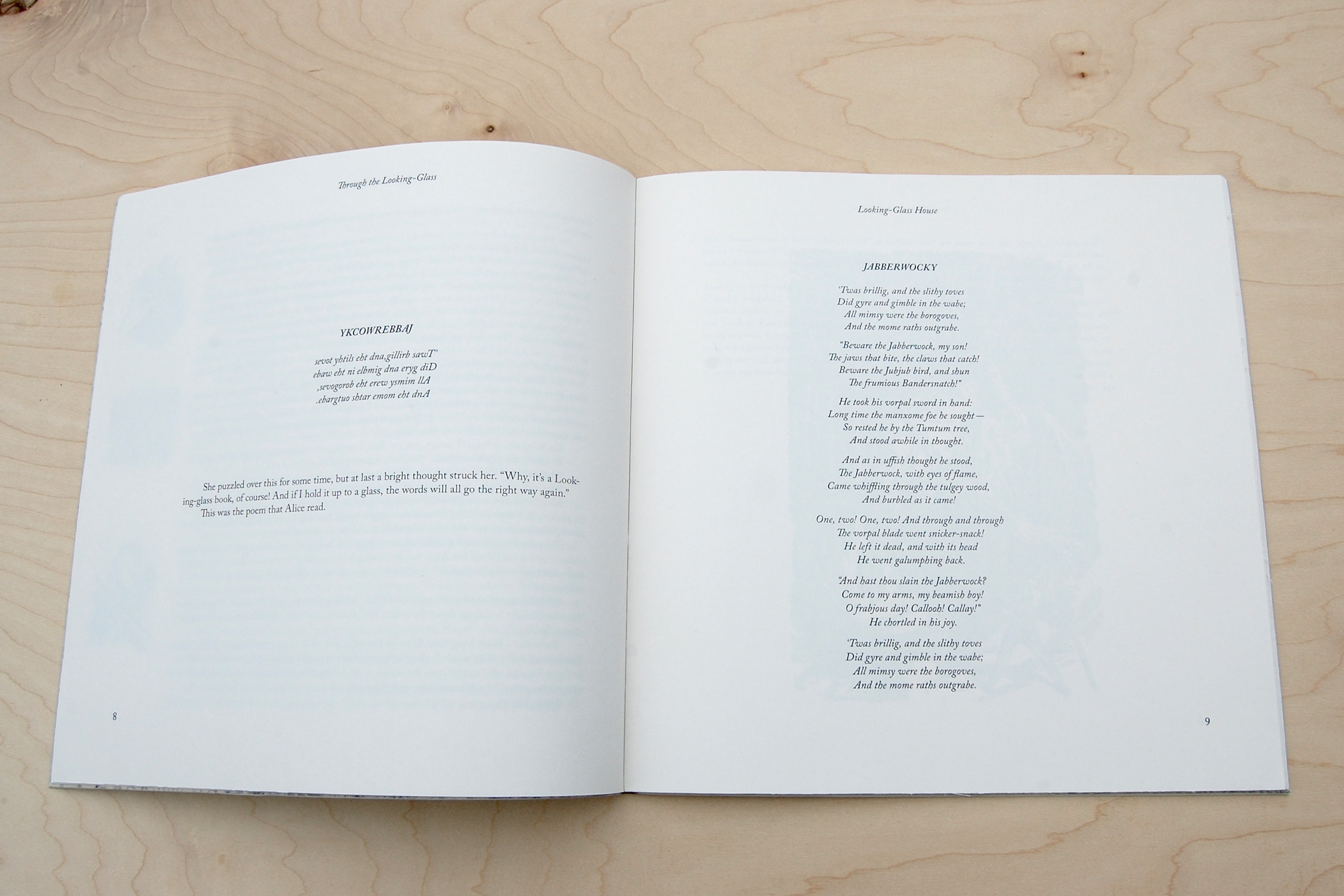 Hand-bound and custom typeset edition of Through the Looking Glass by Lewis Carroll.